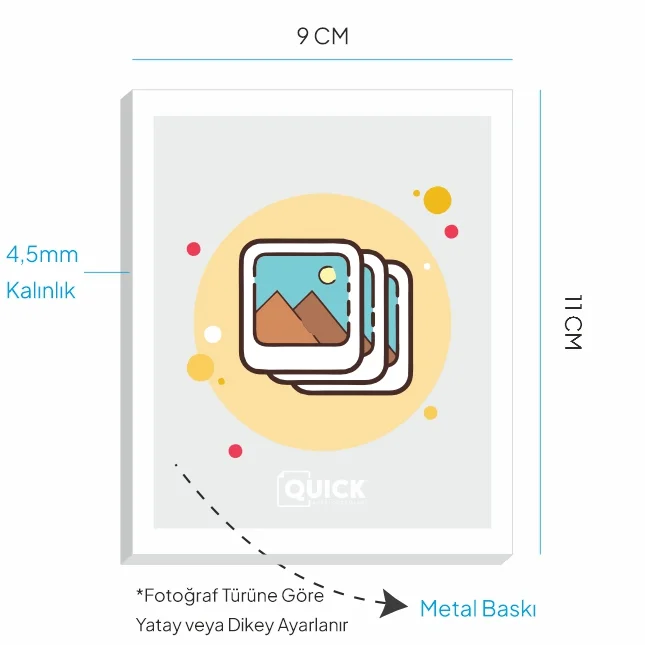 9x11 cm Kalın Foto Magnet Daha geniş baskı alanıyla fotoğrafın tüm detaylarını ve renklerini maksimum görünürlükle yansıtan büyük boy seçenektir. Buzdolabı dekorasyonu ve anı galerisi oluşturmak için tercih edilir.