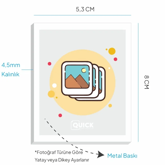 5,3x8 cm Kalın Foto Magnet Kompakt ve taşıması kolay formattır. Buzdolabı, metal dolap ve ofis dolabı gibi küçük metal yüzeyler için idealdir. Hediye ve anı ürünü olarak da tercih edilen şirin ve pratik bir seçenektir.