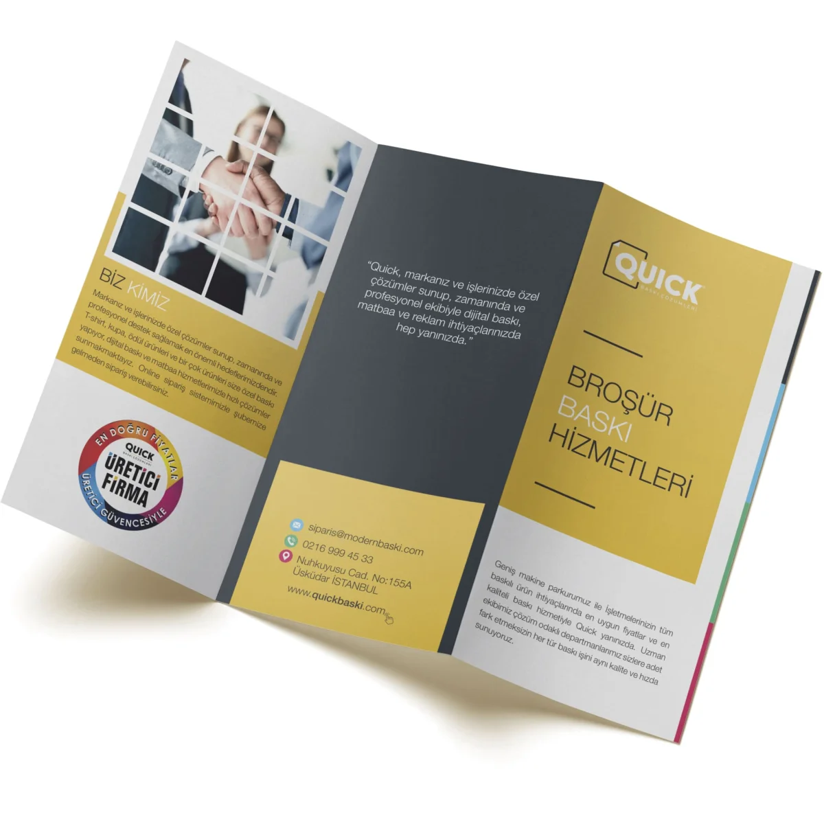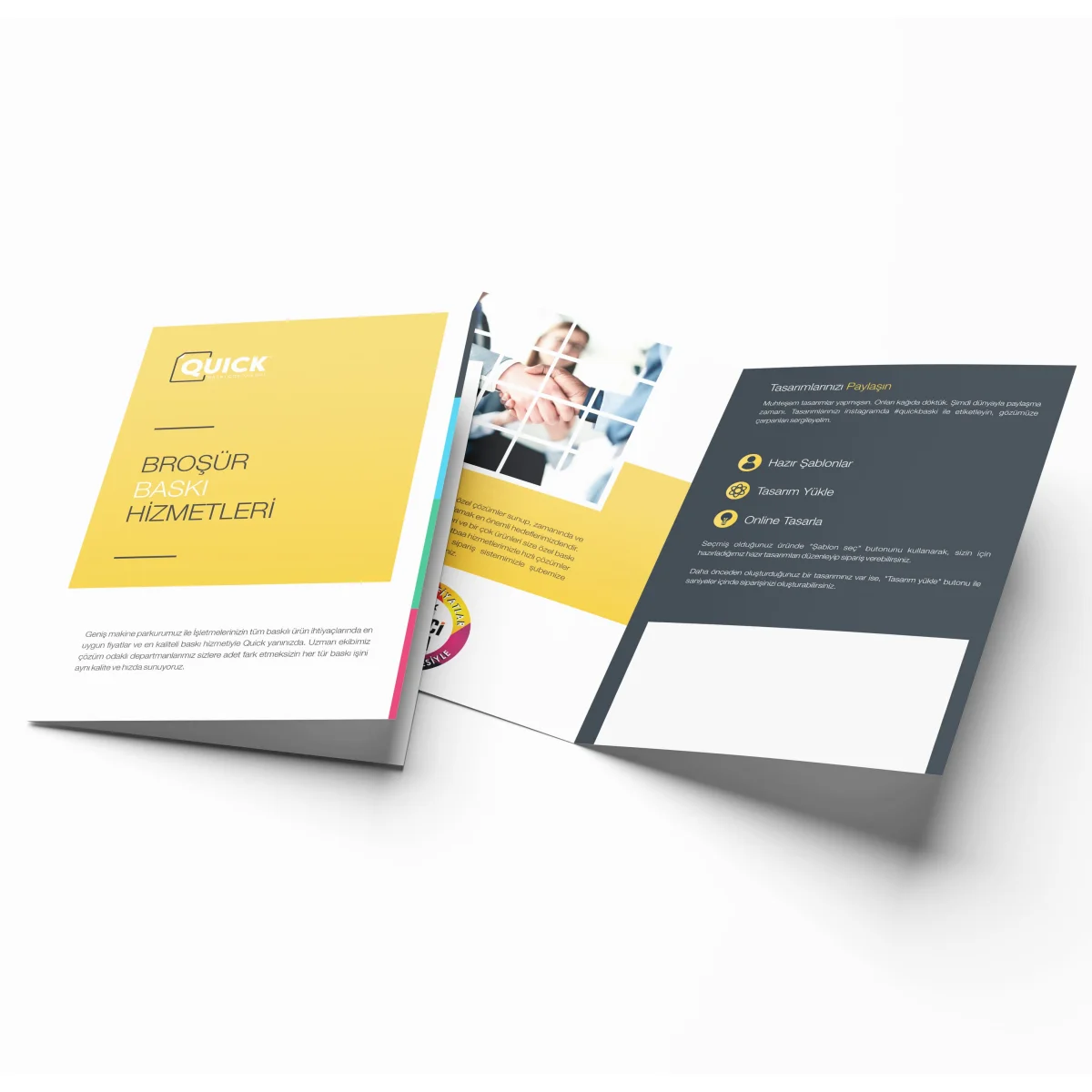 Markanızı daha geniş kitlelere ulaştırmak için A5, A4 ve A3 broşür baskı çözümlerimizi keşfedin ve profesyonel tanıtım materyallerinizi QuickBaskı kalitesi ile hazırlayın.