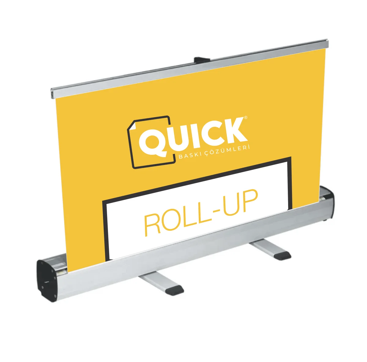 QuickBaskı olarak yüksek kaliteli malzemeler ile profesyonel roll up banner baskı hizmeti sunuyoruz. Roll up banner ürünlerimizin standart ölçüsü 85x200 cm olup, birçok reklam ve tanıtım alanı için ideal bir boyuttadır. Bu ölçü sayesinde hem taşınabilir hem de dikkat çekici bir reklam alanı oluşturabilirsiniz.