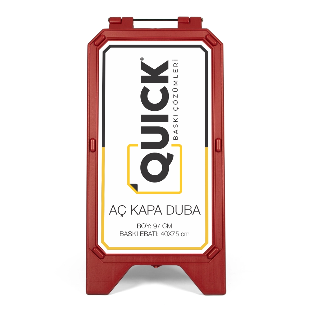 Aç kapa dubalarının kırmızı veya beyaz renk seçenekleri vardır. Duba boyu 97 cm'dir. 40x 75 baskı alanı mevcut olup iki yöne de farklı baskı seçeneği mevcuttur. Sağlam gövdesi sayesinde dış ortamda iklim koşullarına ve dış darbelere dayanıklıdır.