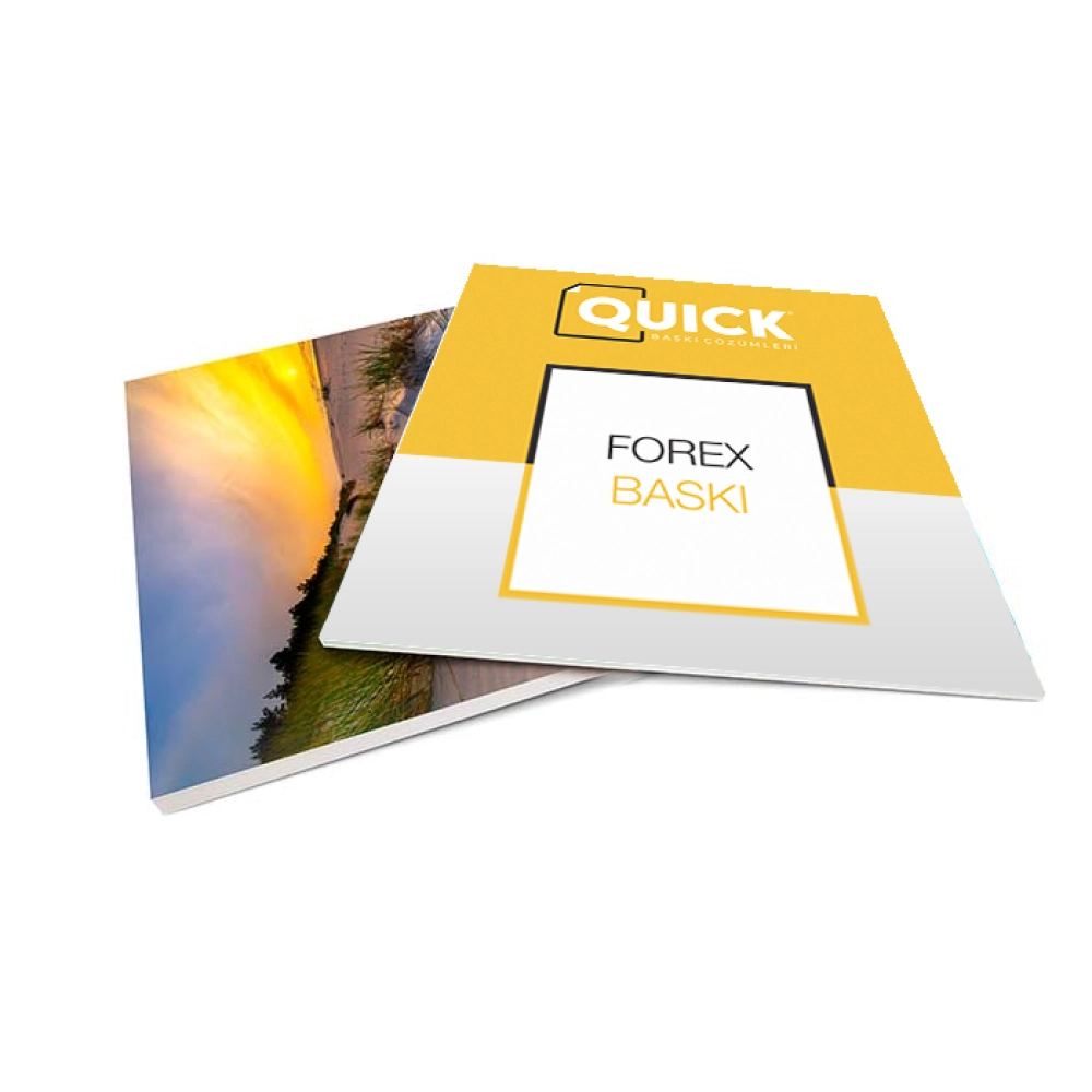 Forex baskı 2.8 mm veya 4.5 mm kalınlığında, sert malzemedir. Forex baskılar sıvama veya direkt üzerine baskı olmak üzere ikiye ayrılır. Kullanım şekline göre uygulanmaktadır. Forex plakalar 152 x 305 cm veya 205 x 305 cm levhalardan oluşur. Bunun dışındaki ölçüler tek parçada baskı alınamaz fakat dilediğiniz ölçüyü girerek istediğiniz ölçüde baskı alınır. UV baskı sayesinde daha canlı renkler elde edilmektedir. Dilerseniz baskı sonrası işlem olarak lazer kesim yapılmaktadır.